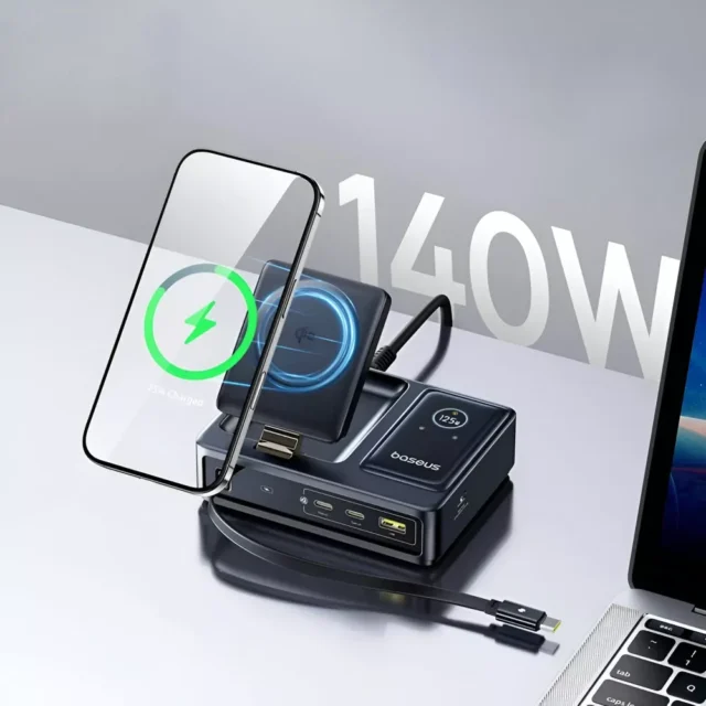 Power up your devices in style with this 140W Desktop Charger, a sleek and efficient solution designed to handle your entire charging setup in one compact unit. Whether you’re at home, in the office, or on the go, this charger is your all-in-one solution for fast, safe, and reliable power for laptops, tablets, phones, and more.
