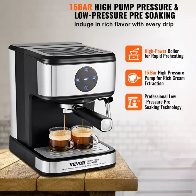 From the moment you wake up to the last sip before bed, this 15-bar espresso machine will elevate your coffee experience to new heights. Perfect for creating espresso, lattes, cappuccinos, and other coffee-based drinks, it’s an essential tool for anyone who loves quality coffee. With its sleek design, user-friendly features, and powerful performance, this machine will quickly become a must-have in your kitchen. Indulge in the rich, aromatic flavor of professionally brewed coffee, right at home.
