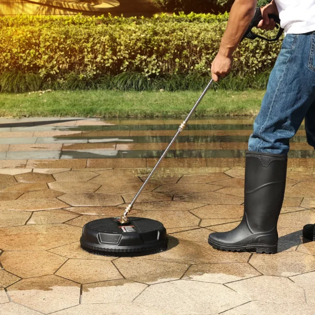 The 15″ Floor Surface Pressure Washer Attachment is ideal for anyone looking to clean large outdoor surfaces quickly and efficiently. It’s perfect for cleaning driveways, patios, sidewalks, garage floors, pool areas, and more. Whether you need to remove dirt, grime, oil stains, mud, or bird droppings, this attachment delivers impressive results in a fraction of the time it would take with a traditional nozzle. The powerful 4000 PSI pressure ensures that even the most stubborn stains are blasted away in one go, leaving your surfaces spotless.
