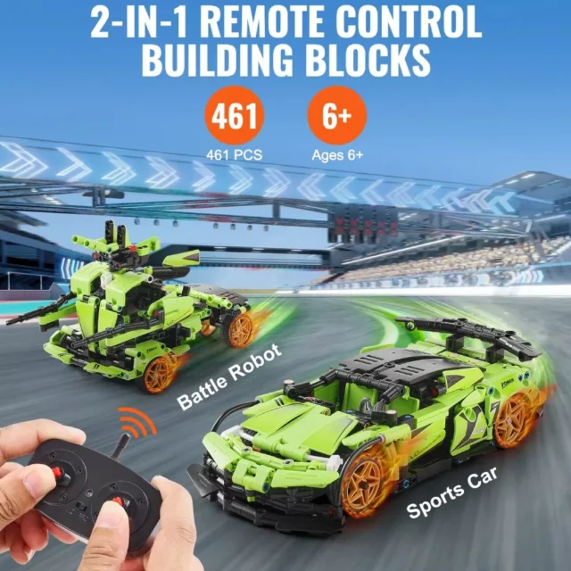Looking for an exciting way to engage your child in hands-on learning? This 2-in-1 RC Car & Robot Building Kit is the perfect combination of fun and education. With 461 pieces, this STEM toy lets kids build a sports car or a battle robot while learning essential skills in coding, creativity, and logical thinking. Whether they’re racing the car or controlling the robot, this interactive toy sparks curiosity and enhances problem-solving abilities in children aged 6 and up. Get ready for endless hours of learning and play!