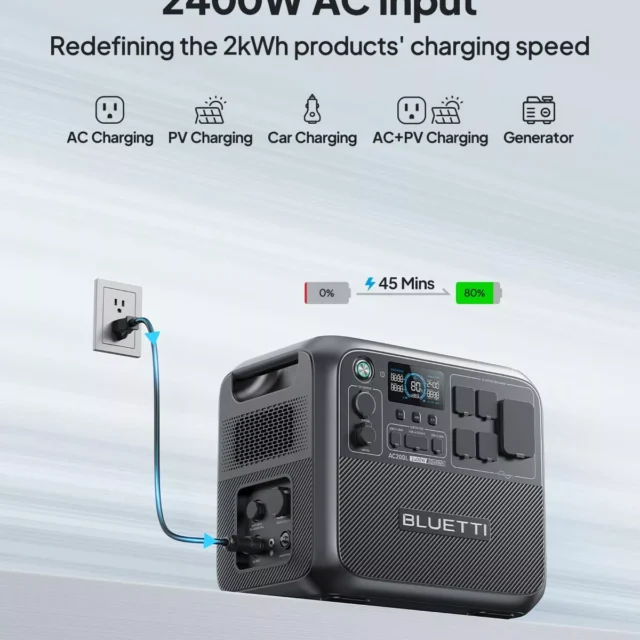 The 2400W Portable Power Station is the perfect blend of power, portability, and versatility. Unlike traditional gas-powered generators, it’s quiet, efficient, and eco-friendly, making it ideal for a variety of situations. Whether you need emergency power during a blackout, power for outdoor activities, or backup for off-grid living, this power station has you covered. With fast solar charging capabilities and expandable storage options, you’ll never have to worry about running out of power again. Invest in a power station that is as reliable as it is innovative, and take control of your energy needs wherever you go.