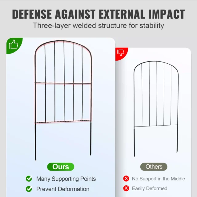 What sets this garden fence apart is its combination of strength, convenience, and style. Unlike traditional fences that require digging and complicated installation, this fence can be set up in no time with minimal effort. The triple-layer welding structure ensures that it stays intact under pressure, while the rust-resistant coating extends the life of the fence, so you don’t have to worry about wear and tear. The 24-inch height provides the perfect balance of security and visibility, and the 2-inch spike spacing prevents larger animals from breaching your boundaries. Whether you’re using it as a safety enclosure, decorative garden barrier, or as a protective fence around your plants, this no-dig garden fence has everything you need to create a secure, beautiful outdoor space.