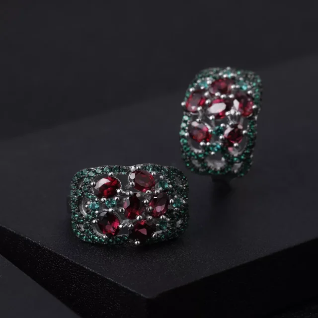 • Eco-friendly Side Stones: Nano emerald-green side stones add a complementary pop of color, enhancing the elegance of the garnet centerpiece.