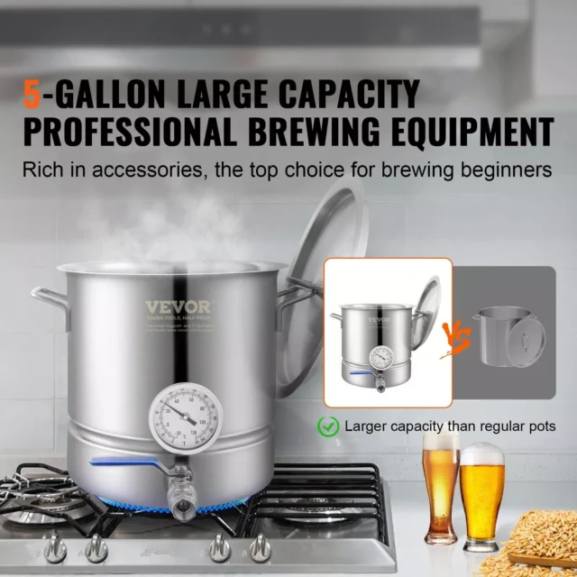 • Generous 5-Gallon Capacity – Ideal for home beer brewing, boiling water, cooking stocks, or even fabric dyeing.