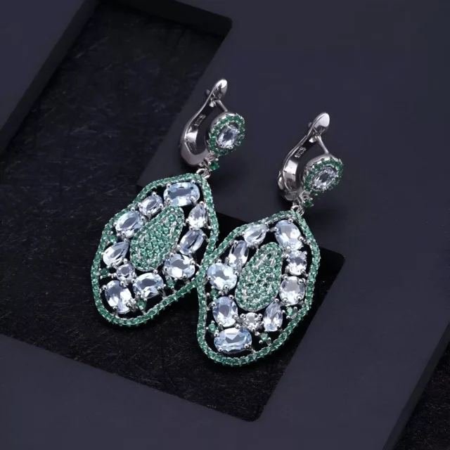 7.74Ct Natural Sky Blue Topaz Sterling Silver Drop Earrings for Women