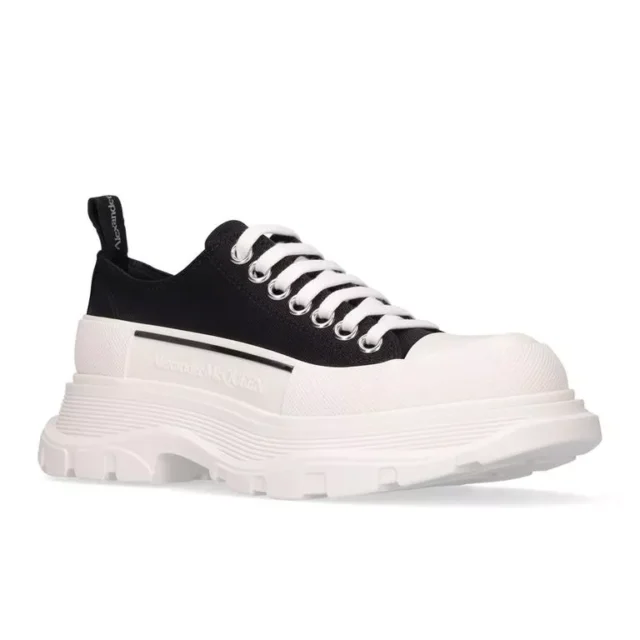 Designed with a lace-up front closure, these sneakers provide a secure and adjustable fit, while the heel pull ensures easy on and off for added convenience. The logo-embossed insole adds an extra touch of luxury and a subtle nod to the iconic Alexander McQueen brand. Whether you’re pairing them with jeans, shorts, or casual dresses, these sneakers will elevate any outfit with effortless ease.