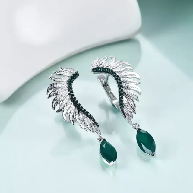 Bring a touch of nature-inspired elegance to your jewelry collection with these beautiful angel wings feather 925 sterling silver earrings. Their stunning design and vibrant stones make them the perfect gift for someone special or a luxurious addition to your own wardrobe. Add them to your cart today and experience the perfect blend of style, nature, and elegance!
