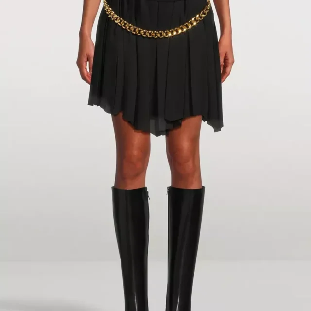 This mini skirt is not just a wardrobe essential but a work of art. Whether you’re attending a cocktail party, heading out for a stylish evening, or creating a sophisticated day look, the Balenciaga Asymmetrical Pleated Mini Skirt will turn heads. The luxurious gold chain at the waist elevates the design, making it ideal for pairing with tailored blazers, crop tops, or sleek blouses. Its pleated design adds a playful yet elegant flair, setting it apart from ordinary skirts.