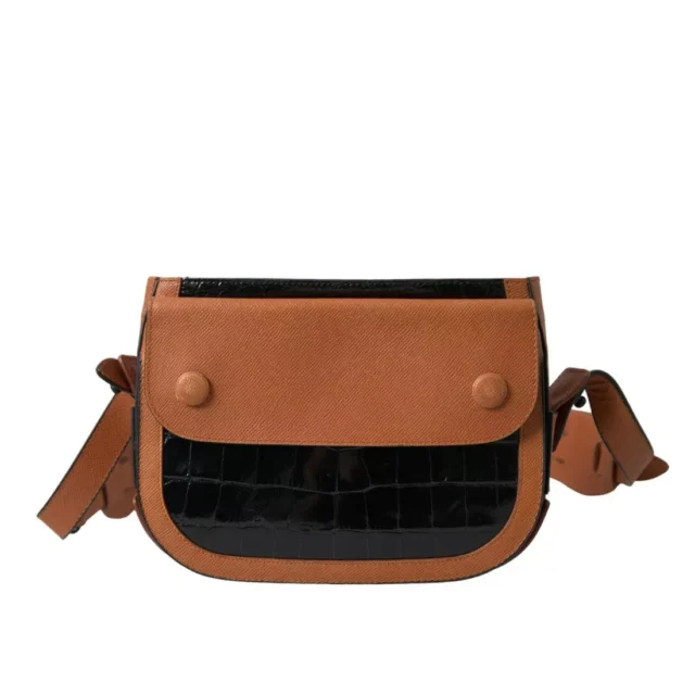 Balenciaga Black & Brown Crocodile Leather Shoulder Camera Bag