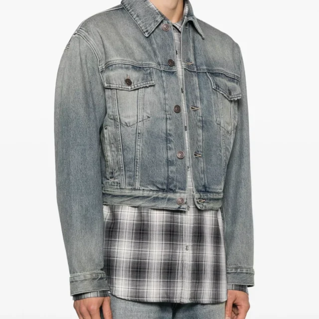 The Balenciaga Cotton Denim Jacket is a wardrobe essential that combines classic style with modern appeal. Made from premium cotton denim, this jacket features a timeless classic collar and a front button closure, providing a versatile addition to any outfit. Whether you’re layering over a t-shirt for casual outings or styling it with a hoodie for a layered look, this jacket adds an effortlessly cool vibe to your wardrobe.