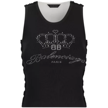 Balenciaga Iconic Sleeveless Ribbed Top with Contrasting Monogram