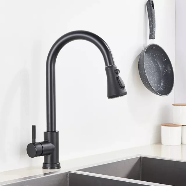 Additionally, the 360° rotation and pull-out sprayer make it incredibly versatile, ensuring that you can reach every part of your sink without hassle. The sprayer’s three spray modes allow for quick adjustments, whether you need a strong stream of water for rinsing dishes or a gentle spray for washing vegetables. Plus, with the durable brass construction and modern black finish, this faucet not only performs well but also enhances the overall aesthetic of your kitchen.