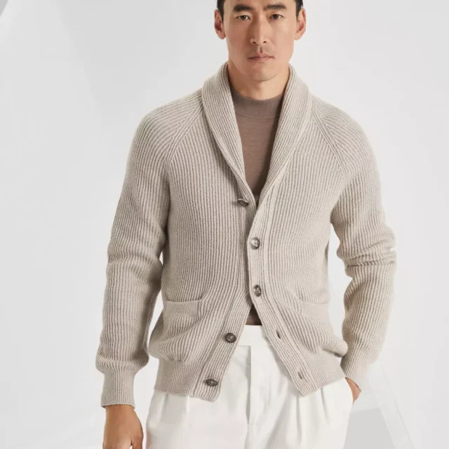 Wrap yourself in luxury with the Brunello Cucinelli Cotton Cardigan, a perfect blend of timeless design and modern craftsmanship. Featuring exquisite shawl lapels and an all-over ribbed design, this cardigan is an everyday essential for anyone who values style and comfort. Made from premium-quality cotton, it offers a soft, breathable, and lightweight feel, making it an excellent choice for all seasons.