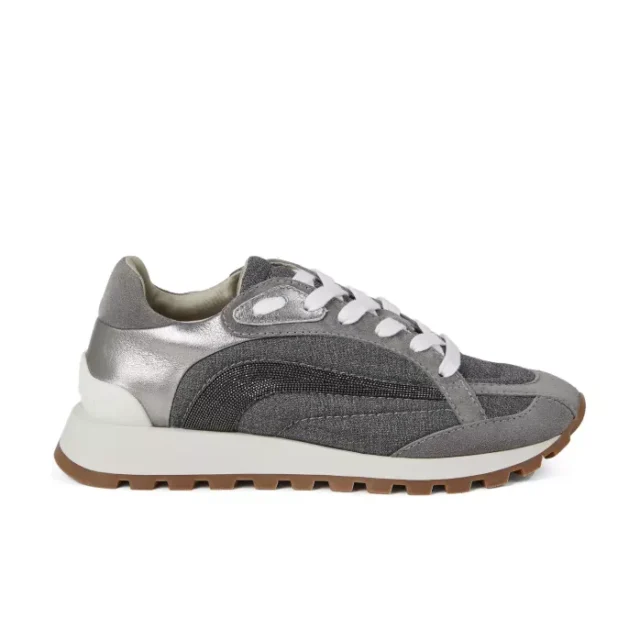 The Brunello Cucinelli Leather Sneakers stand out for their impeccable craftsmanship and unique embellishments. The shiny beadwork elevates the sneakers’ aesthetic, while the combination of leather and suede offers a rich texture that is both trendy and timeless. These sneakers embody the perfect balance between comfort and style, making them a must-have addition to your wardrobe.