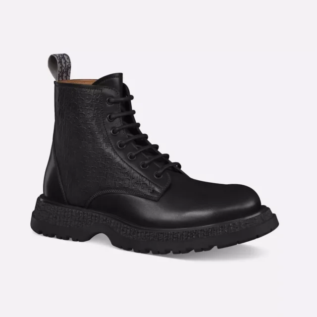 Every detail of these boots is thoughtfully designed to make a statement. The black matte finish complements any outfit, while the high upper with a padded collar provides unparalleled support and comfort. The contrasting Dior signature on the side adds a distinctive touch that speaks to the brand’s heritage of excellence. Featuring a lace-up closure, these boots provide a secure and adjustable fit, making them as practical as they are stylish.