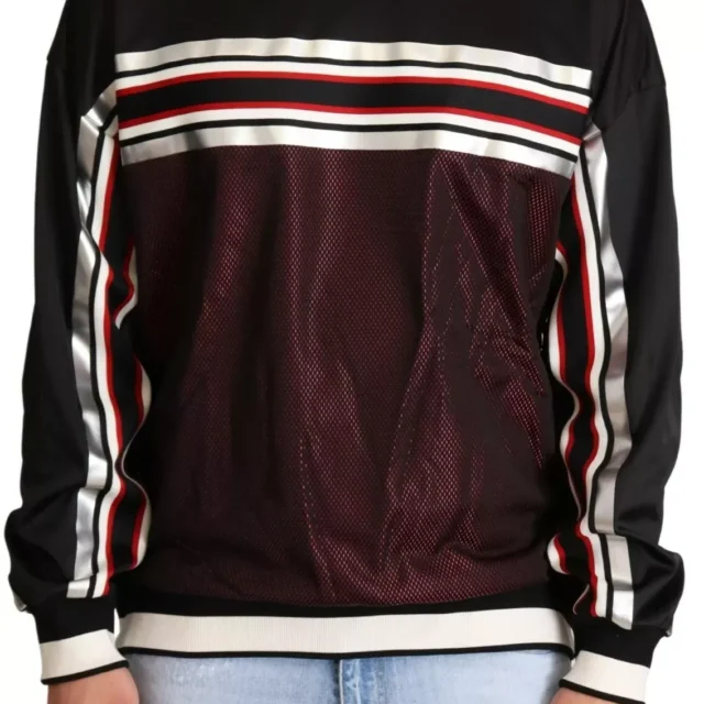 Step into luxury with the Dolce & Gabbana Crewneck Pullover Sweater, a masterpiece of style and sophistication. Perfectly blending comfort and high fashion, this sweater features a striking combination of black, white, and red, making it a versatile choice for any occasion. Whether you’re dressing up for an evening out or keeping it casual, this pullover exudes effortless elegance.