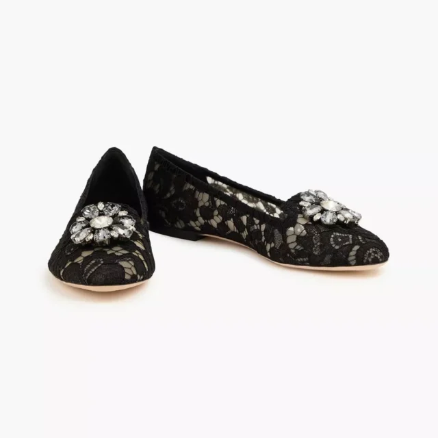Don’t miss the chance to own these stunning crystal-embellished black lace loafers. They are more than just shoes; they are a style statement that exudes grace and charm. Pair them with your favorite dresses, skirts, or even tailored pants for an outfit that turns heads. Add these timeless loafers to your cart now and step confidently into elegance.