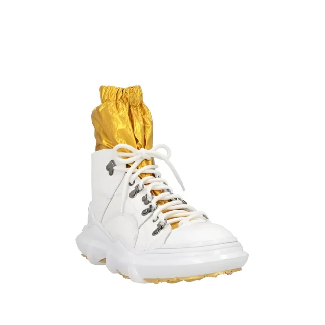 These Dolce & Gabbana High Top Sneakers are more than just footwear—they’re a lifestyle. The bold color combination of white and gold makes them suitable for various occasions, from casual outings to stylish evening events. The use of premium nylon and leather ensures a lightweight yet durable feel, while the rubber sole offers exceptional comfort and traction.