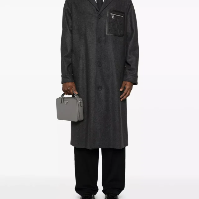 The Fendi Cashmere Coat is more than just outerwear; it’s an investment in style and quality. Made from luxurious cashmere, this coat provides warmth and comfort without compromising on design. Its button front closure and classic lapels are a nod to traditional tailoring, while the mélange pattern gives it a modern, fresh appeal. With thoughtful details like the embossed logo on the chest pocket and functional side welt pockets, this coat is as practical as it is stylish.