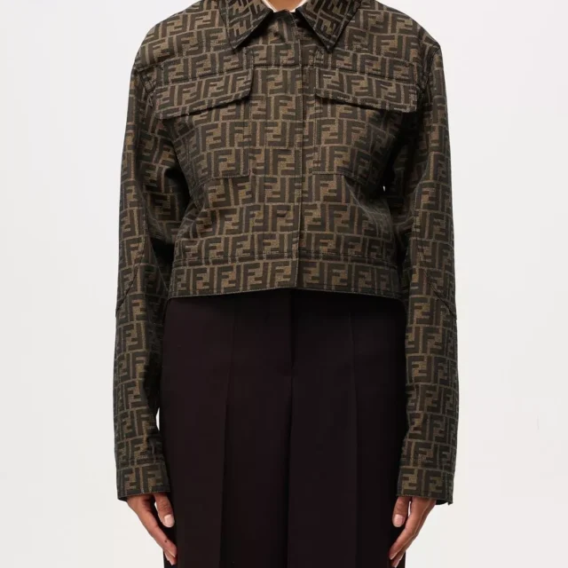 This jacket is more than just an outerwear piece; it’s a fashion statement. Its cropped design and iconic branding make it an instant eye-catcher, while its functional features ensure practicality without compromising style. Whether layered over a dress or paired with jeans and sneakers, this jacket elevates your ensemble effortlessly. Make every outfit unforgettable with the Fendi FF Logo Cropped Jacket.