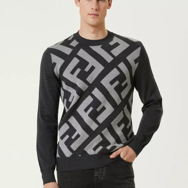 Fendi FF Logo Grey Wool Sweater – 100% Wool Luxury