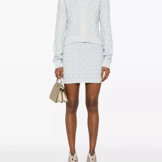 The standout feature of this cardigan is the all-over jacquard weave adorned with Fendi’s iconic FF logo. This timeless pattern exudes exclusivity and is instantly recognizable, showcasing your impeccable taste. The two-tone design enhances its modern appeal while maintaining a classic elegance that makes it perfect for any occasion.