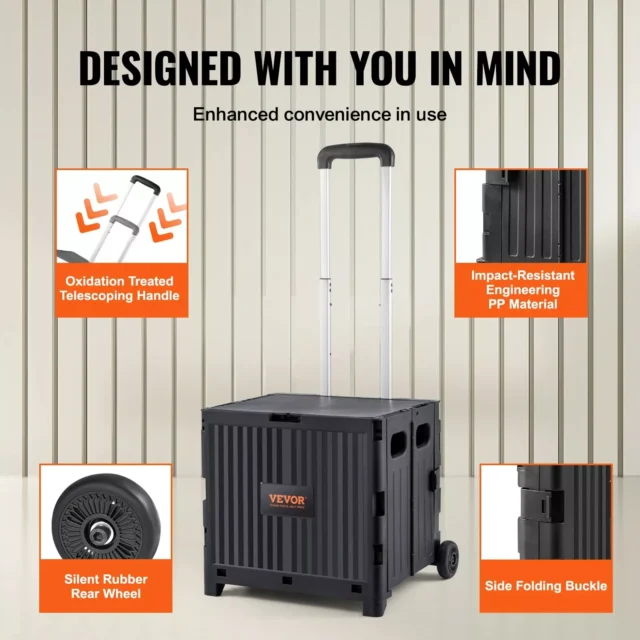 This cart is ideal for a variety of daily tasks. Use it for grocery shopping, carrying office supplies, gardening tools, or even as a travel companion. Whether you’re navigating city streets, taking it on public transport, or rolling it across uneven outdoor terrain, this cart makes heavy lifting a breeze.
