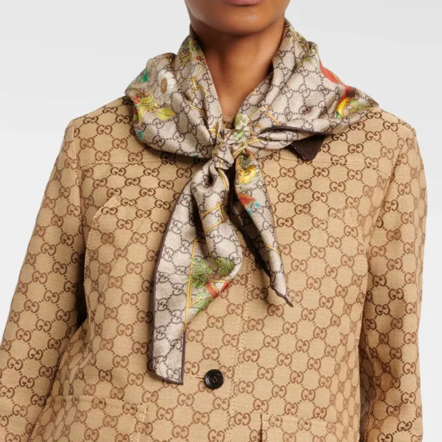 What sets this scarf apart is its intricate attention to detail. The GG logo weave offers a subtle yet recognizable nod to Gucci’s iconic design heritage, while the monogram border enhances its exclusivity. This scarf seamlessly blends tradition with modern luxury, making it a versatile piece that complements any outfit.