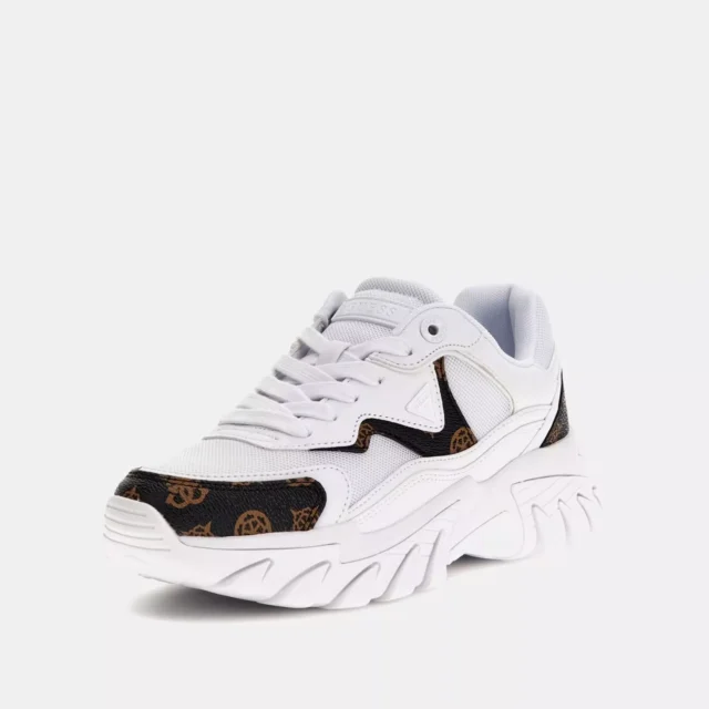 Crafted with attention to detail, these sneakers from Guess are made with a combination of durable polyester and high-quality polyurethane for a lightweight, long-lasting design. The clean white color and lace-up fastening ensure a snug fit, while the stylish look makes them easy to pair with any outfit.