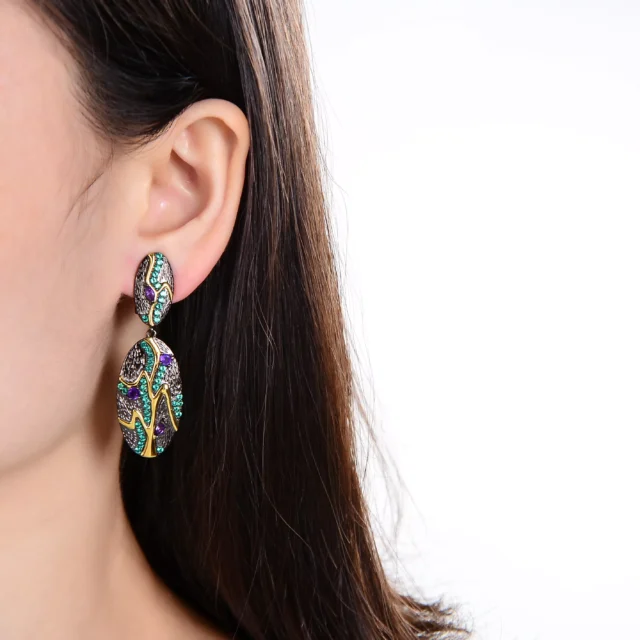 • Handcrafted Excellence: These earrings are meticulously handcrafted, ensuring each piece is unique and of the highest quality. The intricate design showcases fine artistry and attention to detail, making them a standout piece in your jewelry collection.