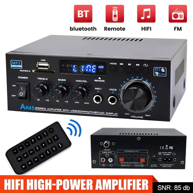 Experience crystal-clear, room-filling sound like never before with this HiFi Bluetooth Stereo Amplifier. Designed for audio lovers who crave premium performance in a compact form, this 2.0 channel digital amplifier delivers a powerful 40W per channel and can peak up to 350W x2, giving your music the punch it deserves. Whether you’re upgrading your home stereo system, creating the perfect garage or workshop setup, or throwing a backyard gathering, this mini amplifier brings the power, clarity, and control you need for any occasion.
