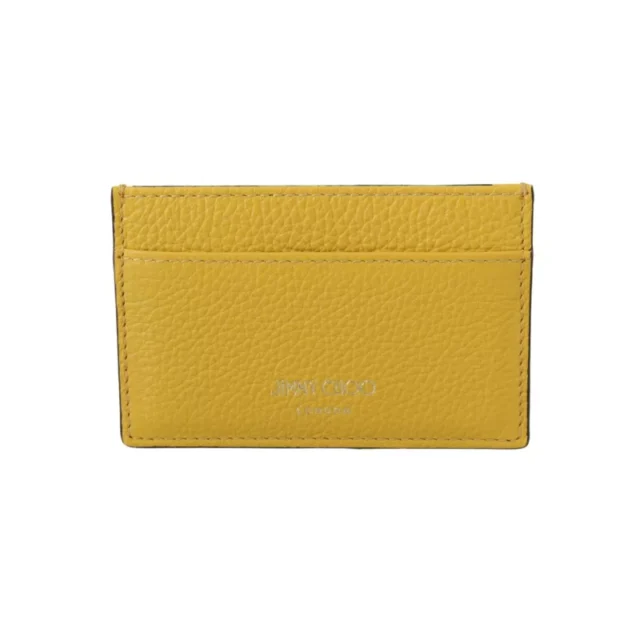 Crafted from 100% high-quality leather, this card holder features a vibrant Yellow Soleil hue that adds a cheerful pop of color to your accessories. The compact design measures approximately 4 inches in length, 2.5 inches in height, and 0.4 inches in width, making it easy to slip into your pocket or bag. Detailed with the iconic Jimmy Choo logo, this card holder exudes sophistication and timeless charm.