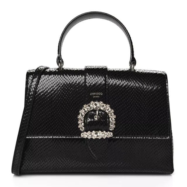 Indulge in the perfect blend of sophistication and functionality with the Jimmy Choo Cheri Top Handle Bag. Designed in luxurious lizard-printed leather, this bag is an embodiment of timeless elegance. Its sleek black hue, crystal-detailed hardware, and versatile design make it the ultimate accessory for both day and evening events. Whether carried by the handle or worn as a shoulder bag, it’s a must-have addition to any fashion-forward wardrobe.