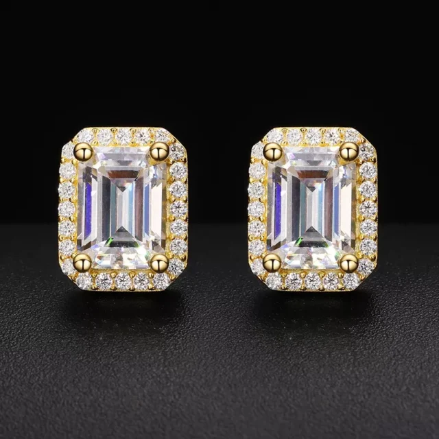 The unique 5x7mm baguette-cut moissanite stones are crafted to reflect light beautifully, creating a dazzling effect from every angle. Known for its exceptional fire and clarity, moissanite offers the brilliance of a diamond without the hefty price tag. Whether you’re heading to a party, a special event, or simply want to turn heads, these earrings are the perfect choice.