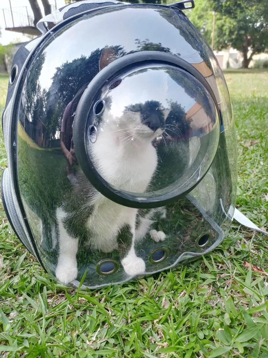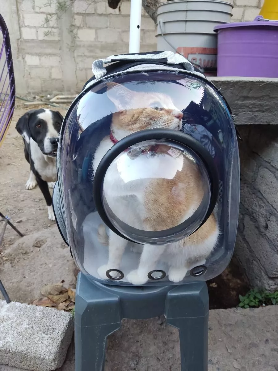 this cat backpack is perfect for my needs. my cat loves being able to see everything through the transparent design, and the ventilation keeps them cool and comfortable. the backpack is well-constructed and sturdy, with padded straps that make it easy to carry. it’s stylish and functional, ideal for vet visits or outdoor adventures. my cat seems very comfortable and secure inside. it’s also easy to clean, which is a big plus. i’m very happy with this purchase and would highly recommend it to other cat owners looking for a quality carrier.