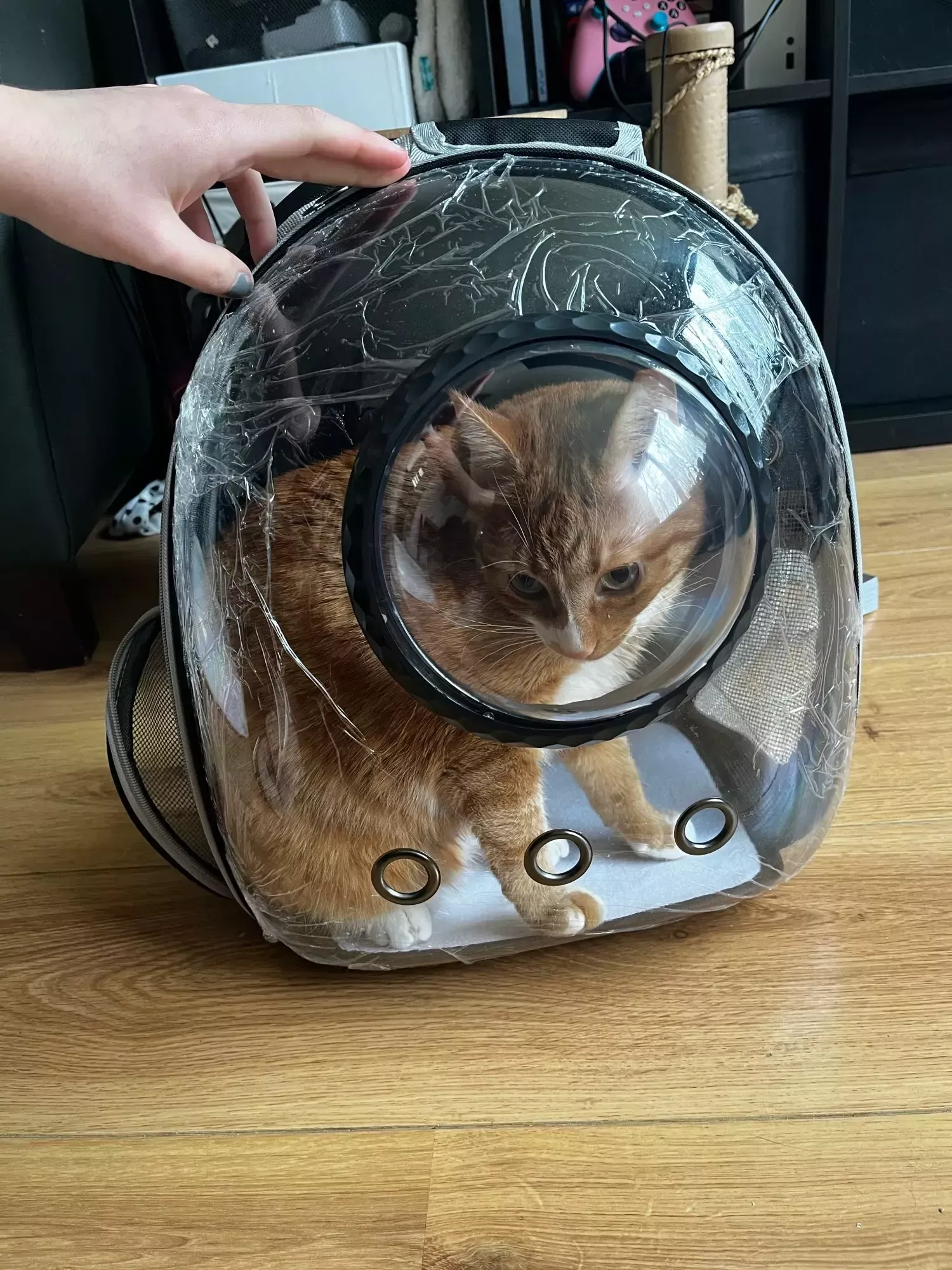 My cat loves to look out of the window in this backpack. It’s her personal little spaceship.