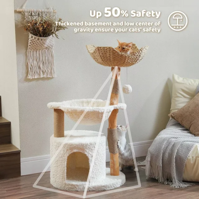 • Real Branch Scratching Post: The natural wood trunk is wrapped in pure sisal rope, providing your cat with an ideal scratching surface while protecting your furniture from damage.