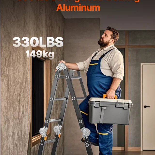 Upgrade your workspace with this ultra-versatile Multi-Purpose Folding Ladder—your all-in-one solution for reaching new heights safely and efficiently. Whether you’re cleaning gutters, painting walls, trimming trees, or tackling DIY projects, this ladder adapts to your needs. Built from reinforced aluminum and engineered for strength and flexibility, it supports up to 330 lbs while remaining lightweight and easy to maneuver.