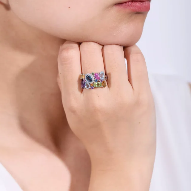 This stunning cocktail ring is more than just a piece of jewelry; it’s a statement. The vibrant combination of multicolor natural stones brings a captivating charm that shines under any light. Whether you’re drawn to the warmth of Citrine, the calming hue of Amethyst, the fresh vibrancy of Peridot, or the sparkling brilliance of Topaz, this ring features them all in perfect harmony.