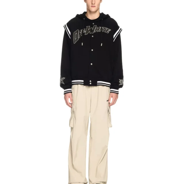 Introducing the Off-White Cotton Varsity Hoodie – the ultimate blend of modern streetwear and timeless comfort. Designed for those who value individuality and a touch of elegance, this hoodie is your go-to garment for casual outings or relaxed days. Featuring premium materials and signature design elements, it’s the kind of wardrobe staple that never goes out of style.