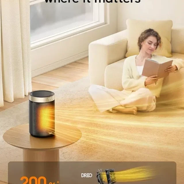 This space heater is the ideal solution for those chilly days and nights, offering powerful heat output with customizable features. Whether you’re working in the office, relaxing in your living room, or catching up on a good book in your bedroom, this portable heater keeps you warm without the hassle. It’s especially great for rooms up to 200 square feet, making it perfect for smaller spaces or individual rooms.