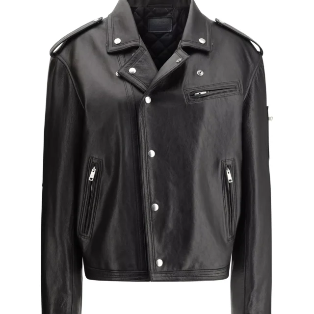 Prada’s Biker Leather Jacket is not just a piece of clothing—it’s a statement of confidence and style. The intricate detailing, combined with its bold design, ensures you’ll turn heads wherever you go. Its high-quality leather construction guarantees long-lasting wear, making it a worthwhile investment for your wardrobe.