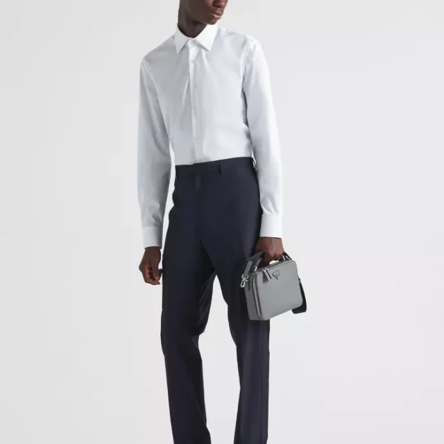 The Prada Cotton Pants are a wardrobe essential for those who value timeless elegance and versatility. Designed with a clean silhouette and practical features, these pants effortlessly combine style and functionality. Whether you’re dressing for a formal meeting or a casual outing, these pants offer a polished look that never goes out of style.