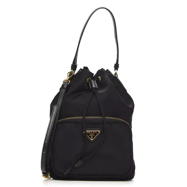 Prada Nylon Bucket Bag with Adjustable Straps and Iconic Triangle Logo
