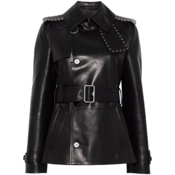 Burberry Leather Jacket with Belt and Stud Details