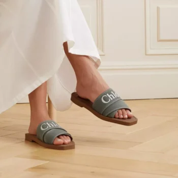 CHLOÉ Cotton Woody Forest Green Women’s Slides Sandals