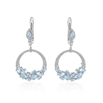 Luxury Sky Blue Topaz Statement Dangle Earrings in 925 Sterling Silver