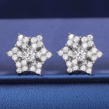 Moissanite Snow Flower Stud Earrings for Women in Sterling Silver