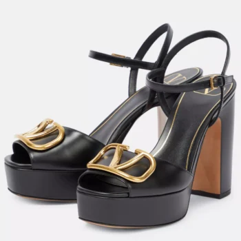 Valentino Garavani Leather Sandals with VLogo Geometric Heel