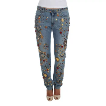 Dolce & Gabbana Enchanted Sicily Crystal Heart Roses Boyfriend Jeans
